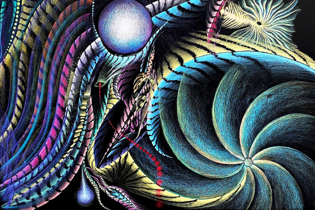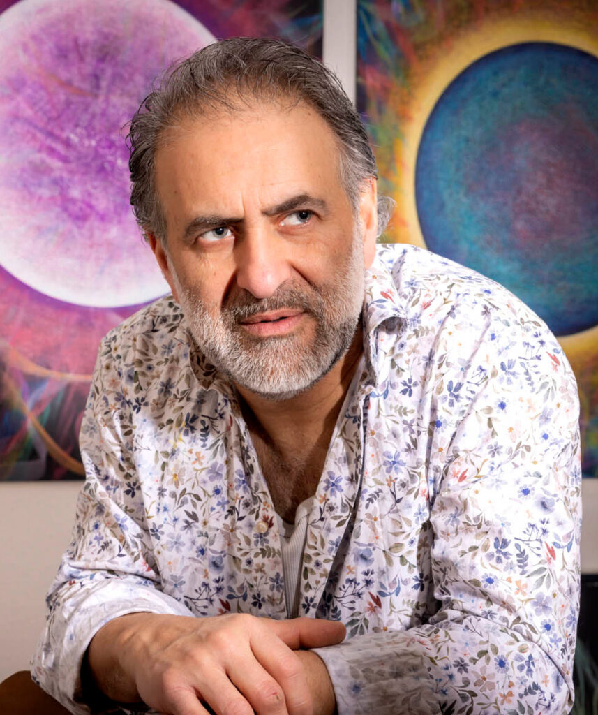 Aus dieser Erfahrung entstand sein Bedürfnis, Energien sichtbar zu machen. Er begann zu malen – geführt, nicht gesteuert. Bis heute sind über vierhundert Werke entstanden, jedes ein Fragment seiner inneren Reise und seiner Verbindung zum Universellen.